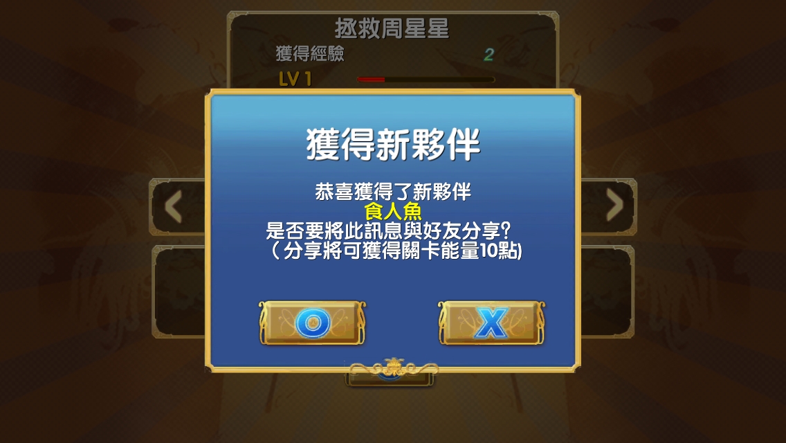 取得新的寵物,遊戲還會跳出系統訊息,詢問是否要將此訊息分享給好友,只要分享訊息,即可獲得 10 點體力。