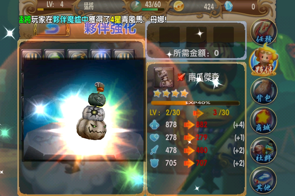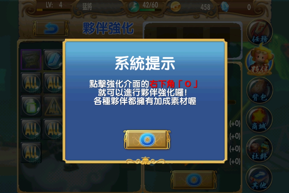 進入夥伴強化頁面,也有很清楚的系統提示!