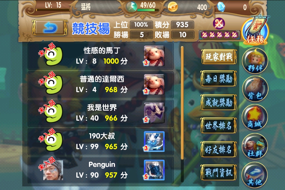 另一個值得一提的,就是「競技場」了!競技場系統會在玩家 15 級的時候開啟,玩家可以在競技場裡面與其他玩家進行切磋。