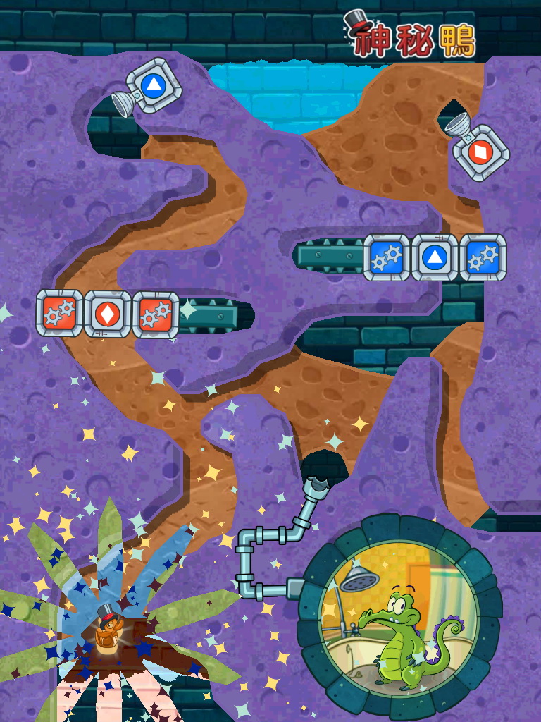 也有可能系統反過來讓原本指定收集的橡皮鴨或關鍵破關道具成為地雷,要求玩家要避開本該收集的物品來找出引導水源的最佳路徑。在類似的場景內同中求異的找出破關的新玩法,很是使人佩服製作團隊的巧思。