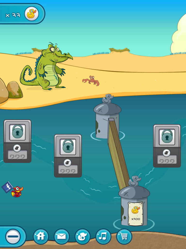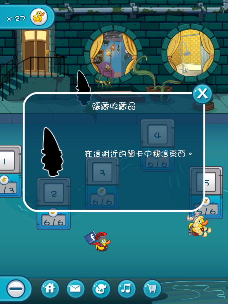 場地目前依照下水道、肥皂工廠、沙灘等主題分為三大區域,每個區域需要收集一定鴨子數才能解鎖,包含挑戰模式估計超過 80 個關卡等待挑戰。