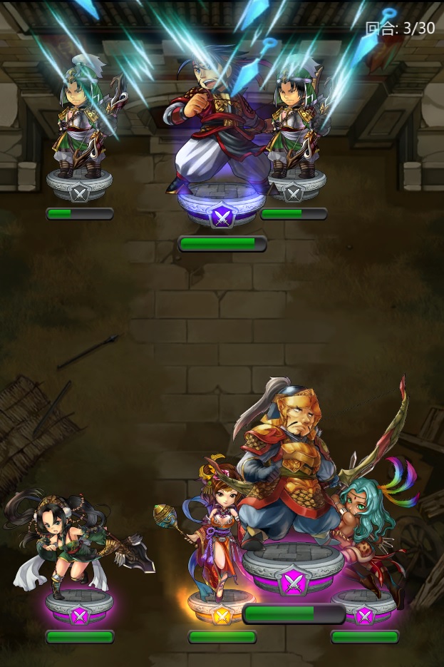 進入這款遊戲,你會發現卡牌(說是卡牌,可是長得卻是公仔造型,可以再可愛一點沒關係!)的收集相當容易,除了抽卡、碎片、副本掉落等傳統途徑,還可以通過「武將錄」獲得。同時,你會發現卡牌對戰不再是「唯戰力論」,還必須考慮陣法選擇、人員站位、卡牌法力值等諸多元素,使戰鬥更有策略性與競技性。而遊戲帶給我們最直觀的感受,莫過於「跳」著戰鬥,你可以想像一下,鬍鬚飄飄的關公扛著青龍偃月刀在戰場上蹦來蹦去,再也想不到比這更可愛反差萌的場景!