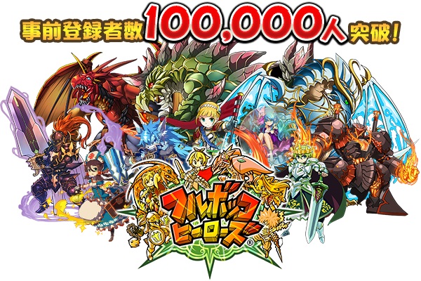 痛擊英雄(暫譯,日文原名:フルボッコヒーローズ)》(iOS/Android)於去年 12 月 16 日起舉辦業界首創的「偷跑轉蛋」事前登錄活動,而在經過了半個多月後,官方宣布目前的事前登錄總人數已突破十萬人(※由於是以帳號數計算,故有重複登錄的可能性)。