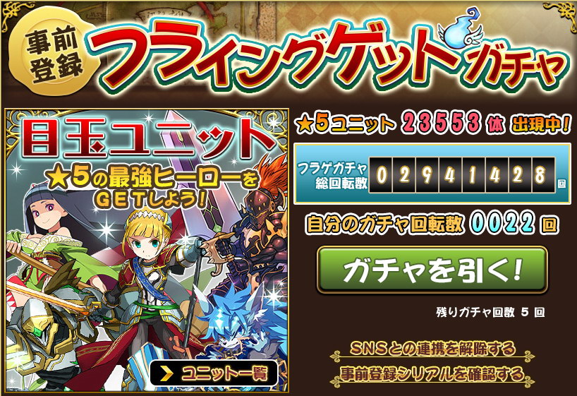 玩家只要前往專屬網頁點擊轉蛋,就可以從★2~★5 的單位中隨機獲得一名英雄。而如果玩家對於自己轉到的英雄不滿意,還能放棄重抽,並透過發送推特的方式不斷取得轉蛋資格,直到轉到自己喜歡的英雄再確認產生序號。