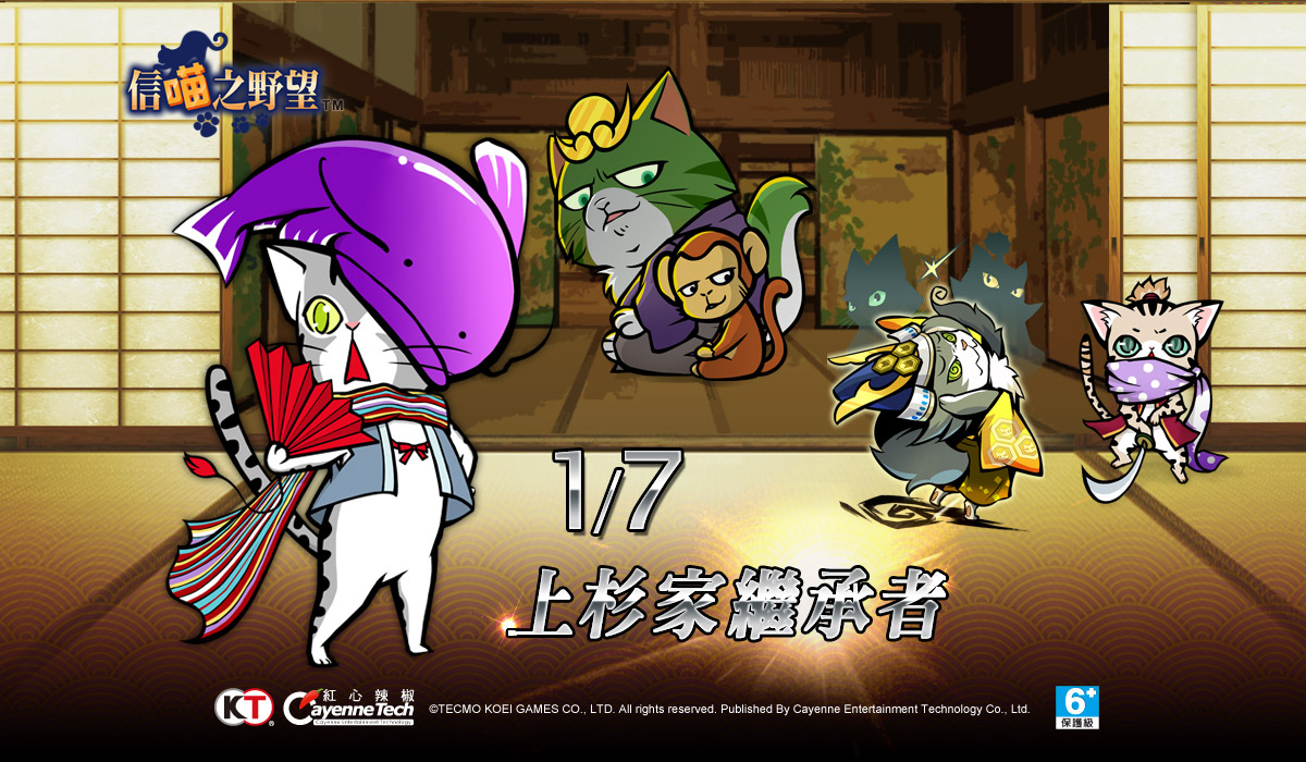 紅心辣椒旗下《信喵之野望》於今(7)日推出「上杉家繼承者」改版,除了新增「上杉喵勝」、「淺井喵政」、「黑田貓成」等多名智慧與武力兼具的貓武將外,更搶先日本推出「竹喵半兵衛」先行貓武將。