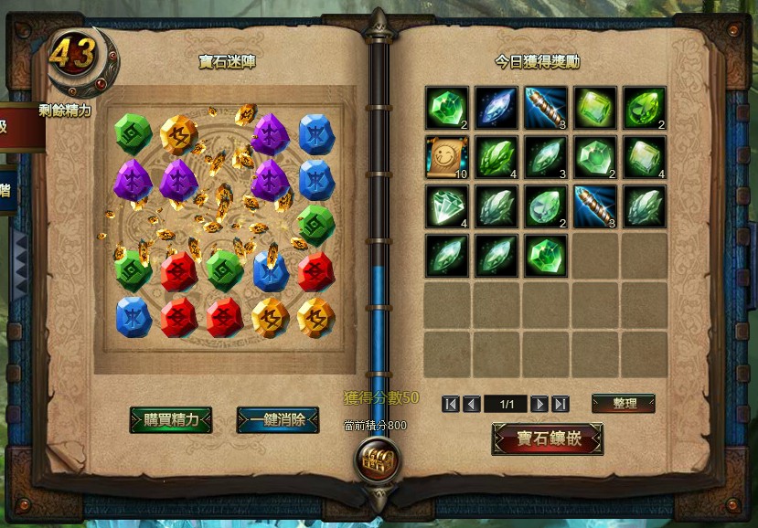 寶石迷陣:每日增加 10 點初級寶石迷陣精力。
