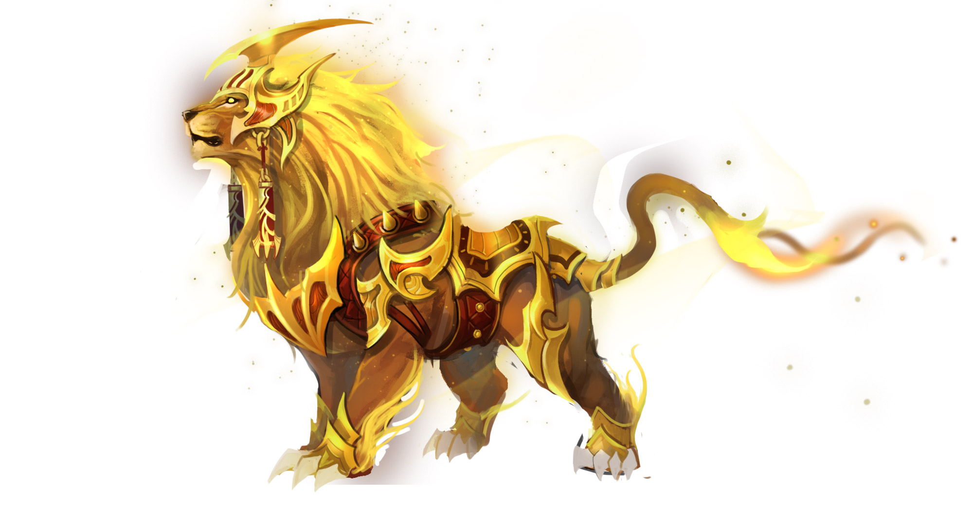 獅王崛起,王者坐騎再臨!金甲獅王的基本屬性較其他坐騎高,並擁有強力的坦克保護技能「金獅之吼」,對於戰士職業的英雄將提升相當大的坦克能力,因為減低傷害包含物理、法術攻擊,在競技中可以抵擋法師類型職業的高輸出傷害,是戰士職業的坐騎最佳選擇!