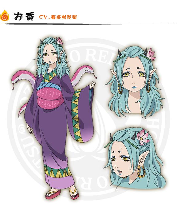 以桃太郎三神獸小白、琉璃男、柿助為首,加上小報記者貓又的小判可愛呆萌的動物軍團到處趴趴走,另外還有御姐女獄卒阿香、地獄偶像歌手蜜桃真紀等花旦,以及甘草型小弟拍檔唐瓜&茄子。豐富的角色陣容編織一幕幕令人噴笑得的輕鬆短劇。