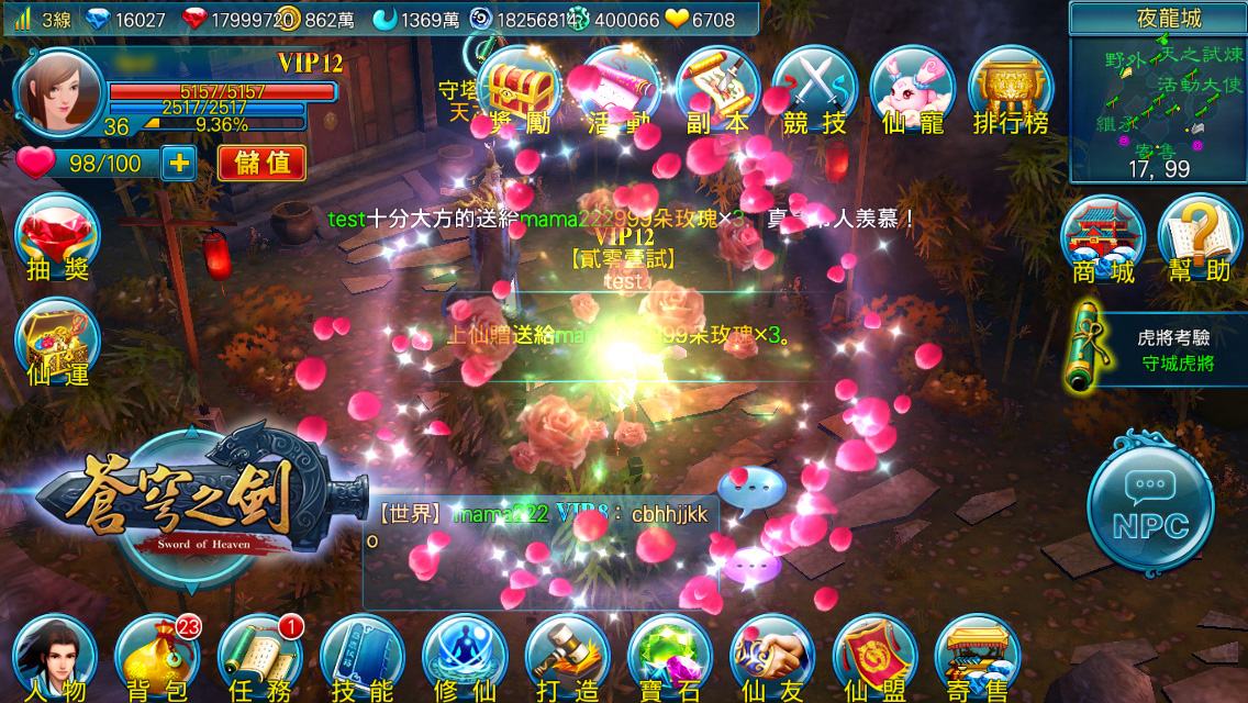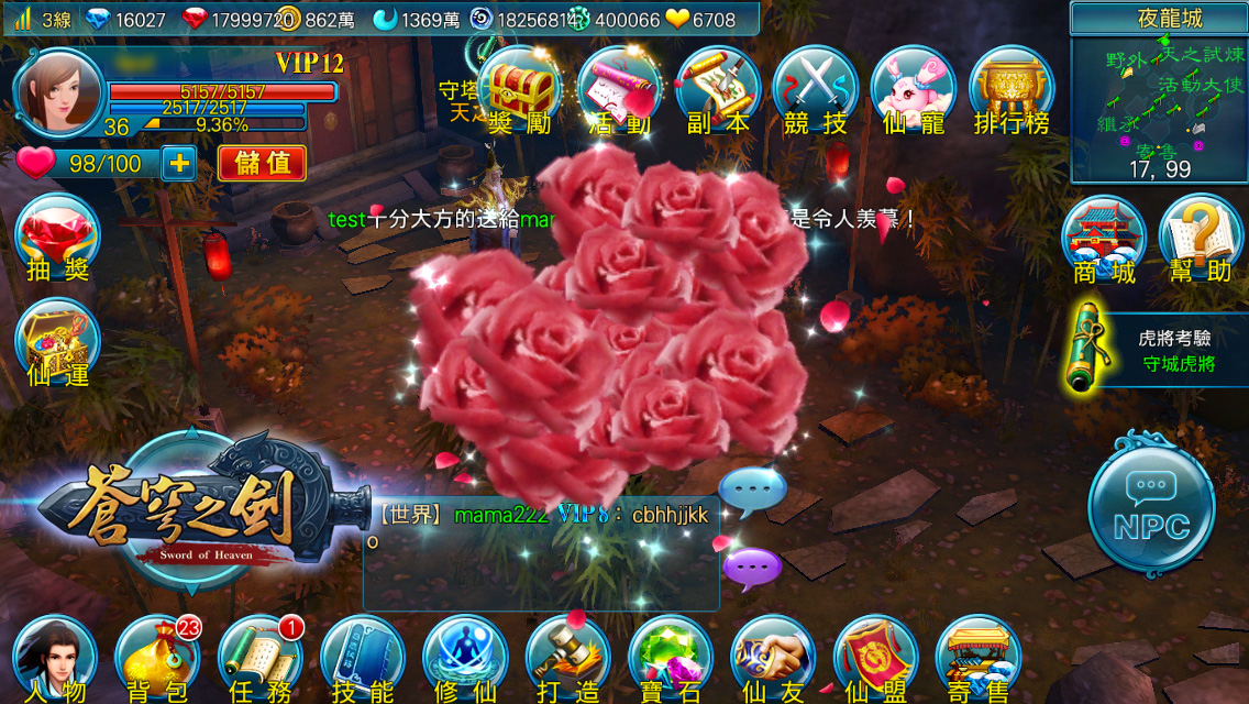 蒼穹之劍》全新推出浪漫貼心的「鮮花系統」,讓玩家可以透過點選其他線上玩家或是進入該系統等方式來送花表達情意,此外,送花給其他仙友更可以額外獲得「魅力值」!寒冷的冬季,快來表達情意溫暖彼此的心!