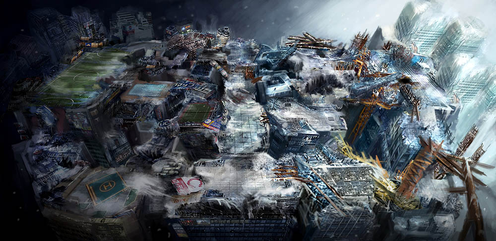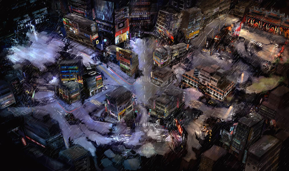 PVP 競技模式神器爭奪戰的設定原畫,以崩毀的台灣作為原想構圖