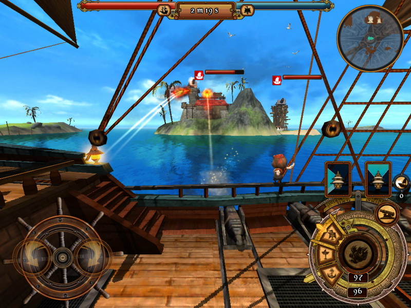 玩家主要的攻擊方式共有兩種,一種是在船隻前方裝上船首像,讓玩家可以直接將海盜船撞向對手船隻造成大量損失,另外則是利用船隻兩側的炮管來進行炮擊。