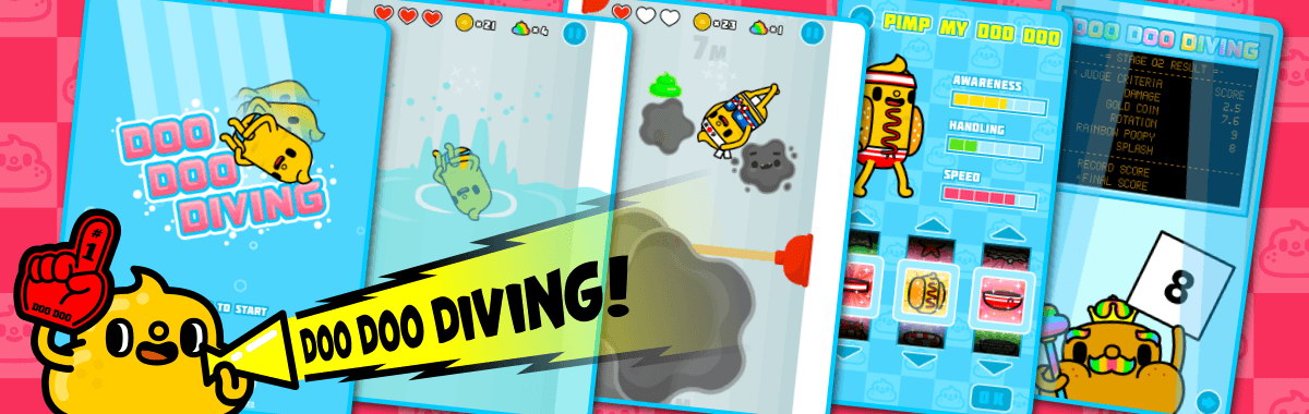 《Doo Doo Diving》是一款以廁所為背景的跳水小品遊戲,玩家要操縱金黃色的便便「Doo Doo」跳進馬桶,一路閃過重重阻礙並獲取高分。