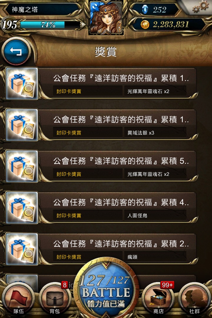 在下一次的公會活動中,前 100 名公會將可得到官方準備的一份小禮物。