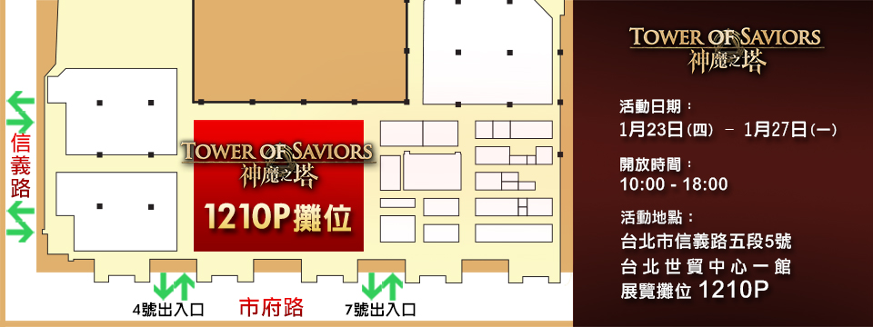 《神魔之塔》電玩展官網或官方粉絲團查詢。