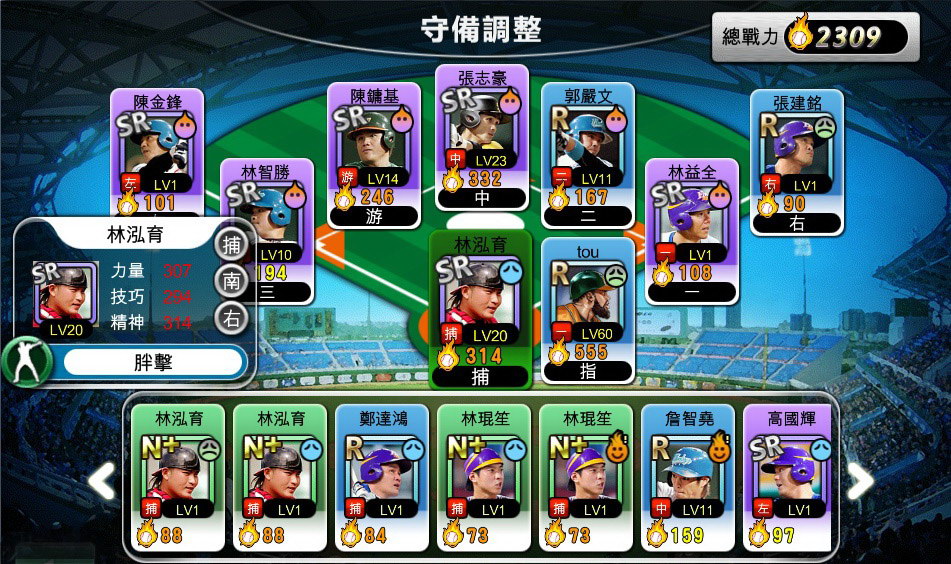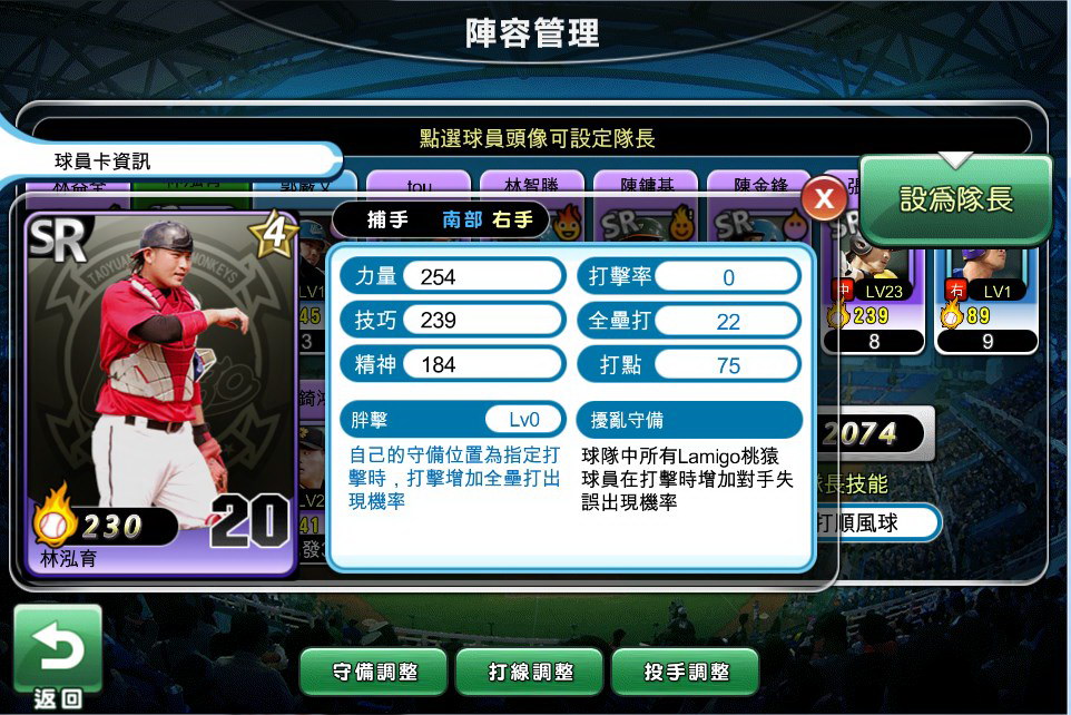 所以在每場的陣容調配上是要適時調整的,因為每場關卡的對手能力值不同,如果排出好的打擊棒次或不同的調度策略,就可有效獲得勝利。