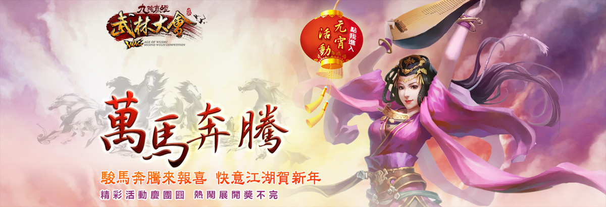 迎接 2014 馬年到來,八大慶典活動即刻開跑,超稀有馬匹「飛雲騅」與「黑水仙」現身,要陪九陰大俠們度過一個好年。