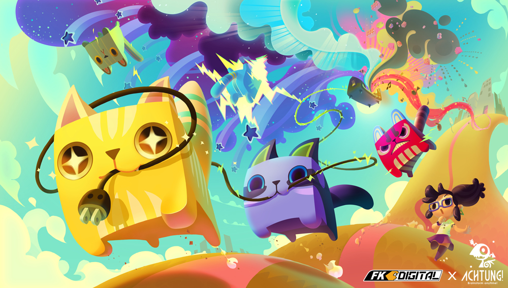 方塊貓》是台灣阿克騰創意的原創作品,以色彩繽紛的方塊造型貓咪為主題,2011 年曾以《方塊貓快遞任務》奪下 2011 巴哈姆特創意遊戲設計大賽冠軍,後陸續在 Facebook 與手機上推出多款系列作。