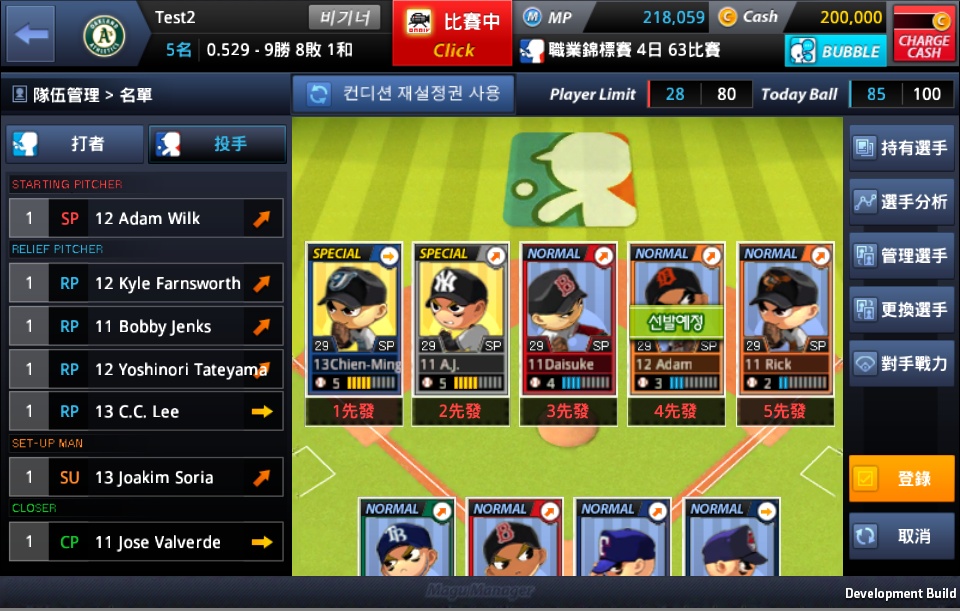 此外,獨特的培養及強化系統模式,讓玩家還可依據戰略經營專屬的隊伍,讓所屬球隊成為具備「強攻型」或「小球戰術」…等不同類型的唯一勝利隊伍!而刺激的遊戲過程不但讓玩家感受有如親臨實境的臨場快感,簡易容易上手的操作模式,更打破年齡、空間、時間的限制,2012 年於韓國一上市,即挾帶超強炫風席捲遊戲市場,一舉攻佔 App Store 免費遊戲類排行榜前五名寶座,相關棒球商品、話題更是不斷延燒,掀起一股驚人的棒球遊戲風潮!《