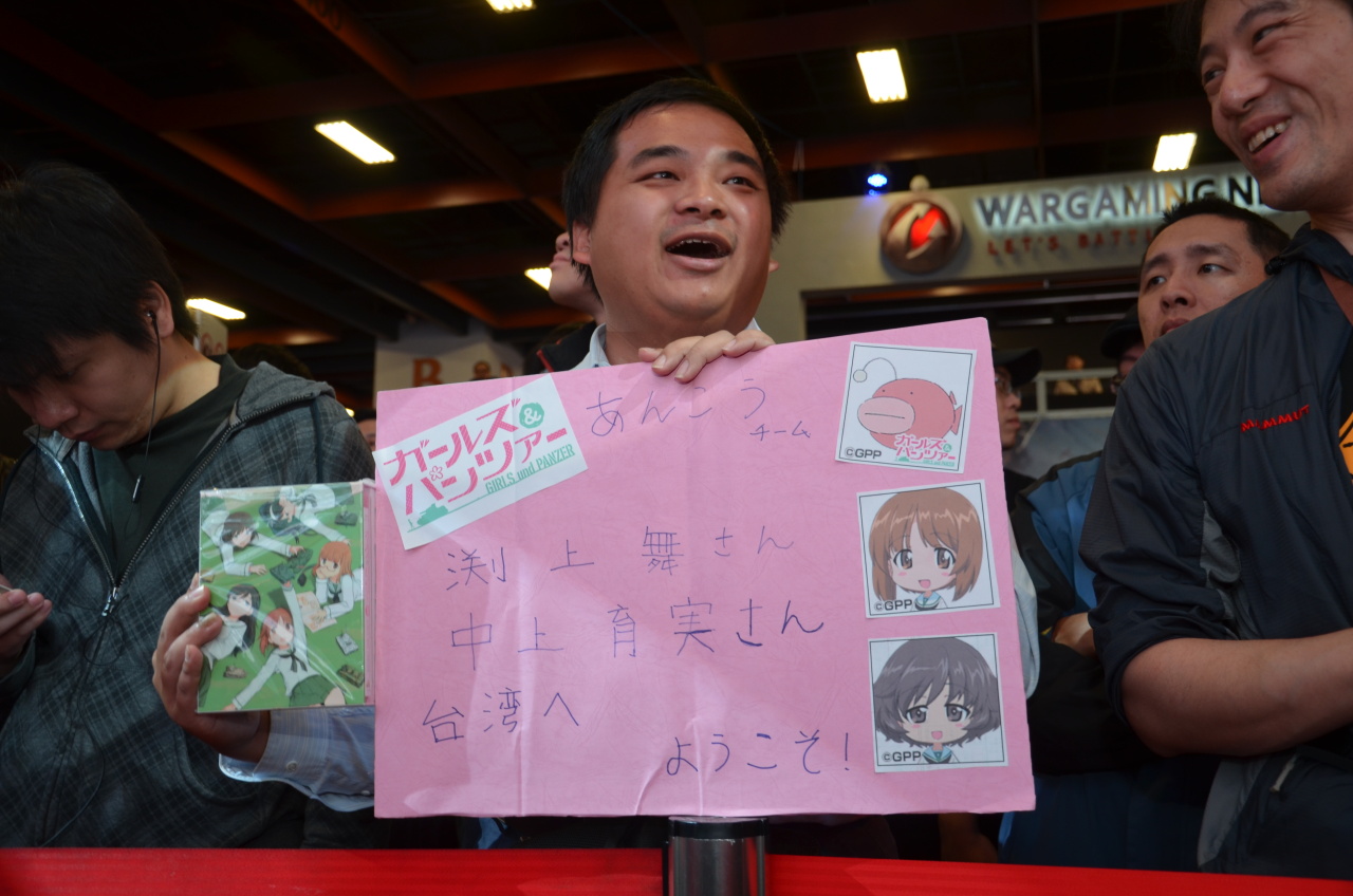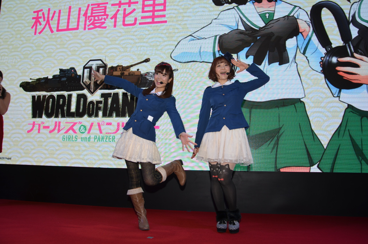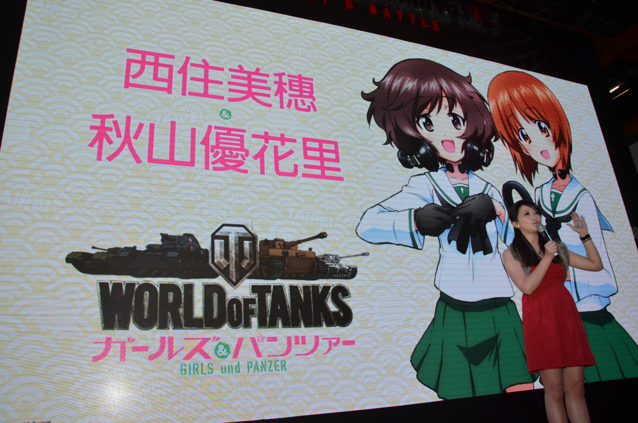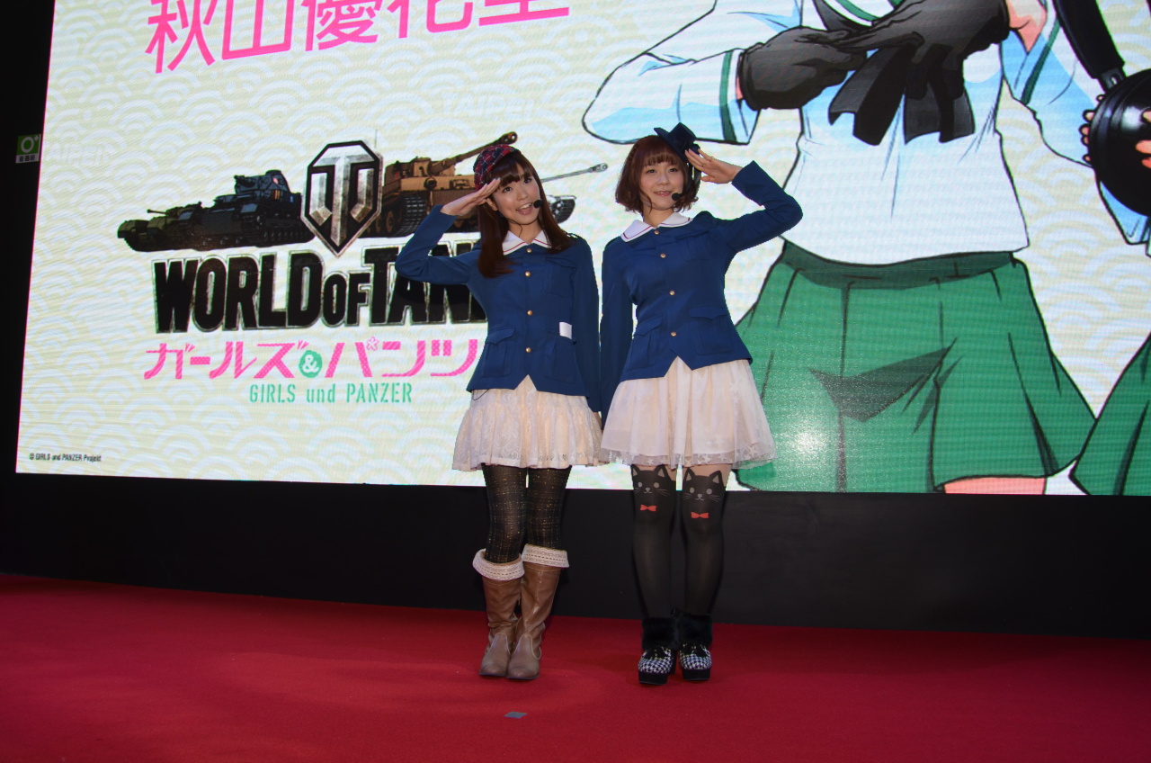 Wargaming 於台北國際電玩展上邀請到日本戰車動畫《少女與戰車》中,大洗女子學園、鮟鱇隊的隊長「西住美穗」聲優 淵上舞(渕上舞)及填裝手「秋山優花里」聲優 中上育實(中上育実)來與粉絲互動。