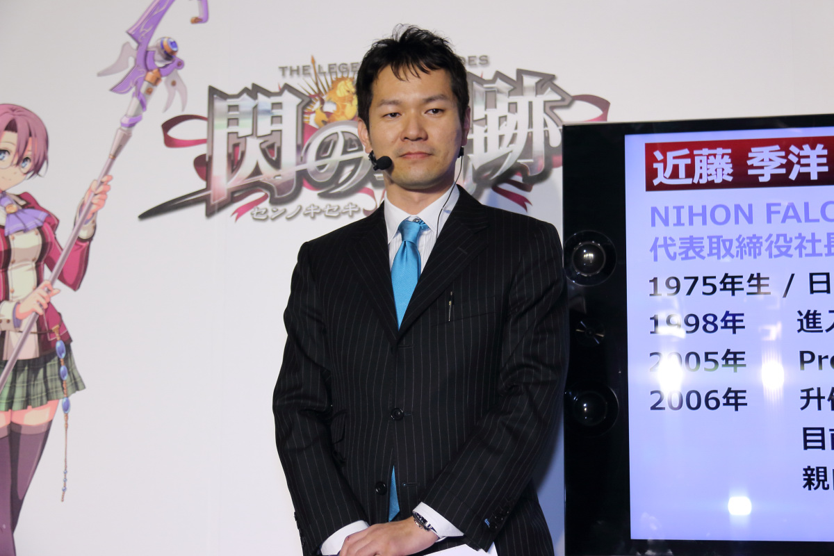 代表取締役社長近藤季洋親自來台介紹旗下人氣角色扮演遊戲《軌跡》系列最新作《英雄傳說 閃之軌跡》的特色與亞洲展望,會中同時