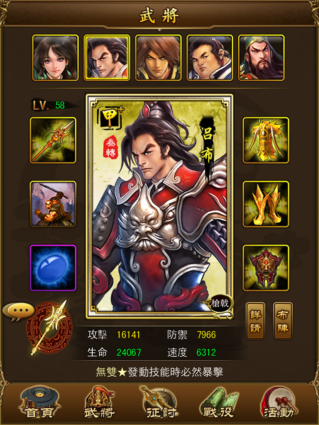 「神級技能書」出現可以說是為武將呂布度身定做的秘笈,源於呂布的第二天賦「飛將 增加 15% 閃避」,搭配神級閃避技能書絕對稱得上是如虎添翼。