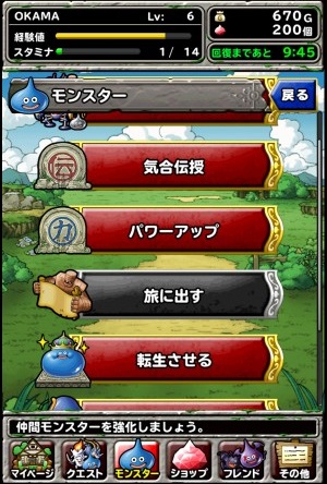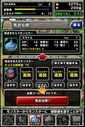 所以,在需要消耗 “ 行動力 ” 來探索迷宮的狀況下,等級就沒有那麼好提升了。這時候「氣合傳授」就派上用場了,利用在迷宮中收到的怪獸來提升自己喜愛的怪獸等級,也能維持探索迷宮的動力。