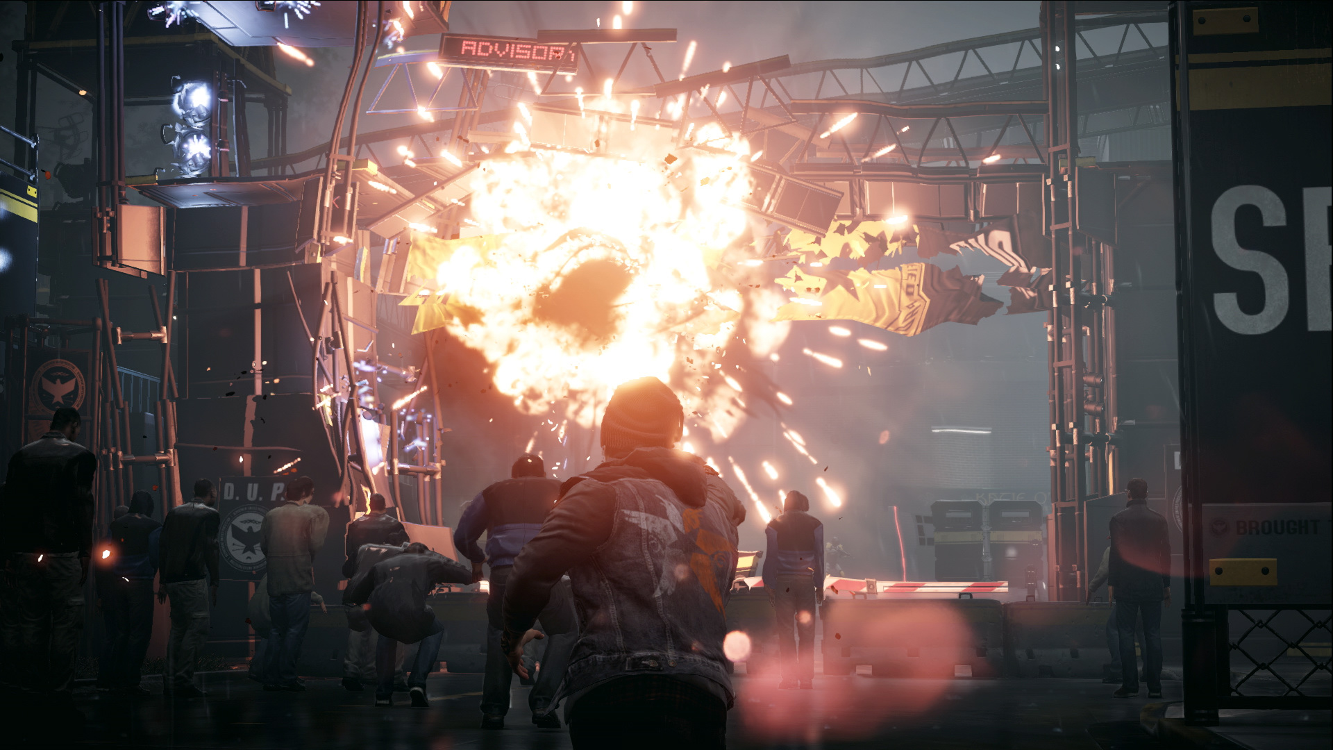 場景中有許多路障可以破壞,聯保部為了管制市民而設立的關卡高台可以施展衝擊波加破壞。借助