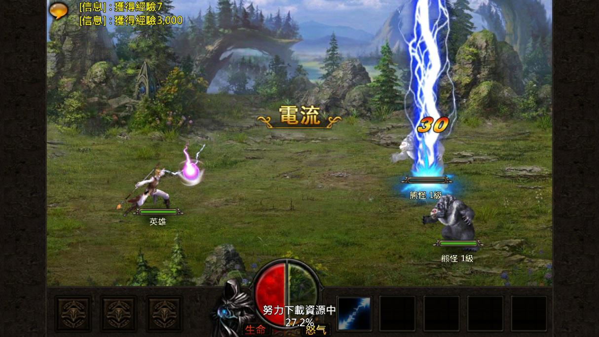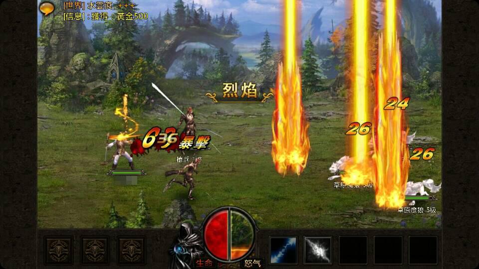 法師的武器是法杖,主要的輸出方法當然是法術攻擊囉經過兩場簡單的戰鬥後,學會了法師第一個群體攻擊技能——『烈焰』,可以有效打擊敵方全體敵人,清除小兵小怪的效果可是相當的威武。沿途上還會結識一些相當帥氣的傭兵也會一起參戰,當然攻擊招式變化也會愈來愈多,例如搭配滿滿的怒氣就能使出致命性的攻擊。