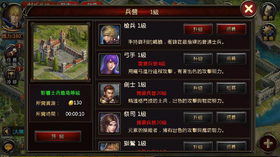 兵營等級提升