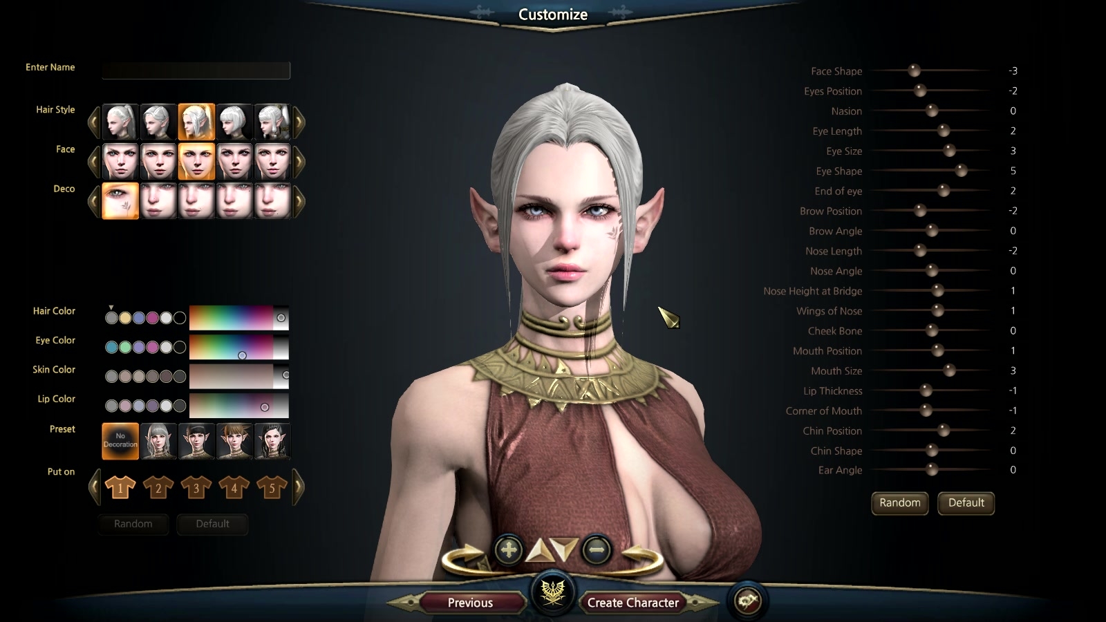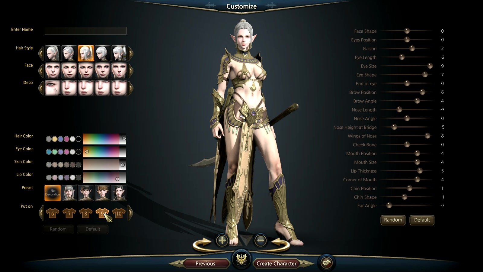 創造角色時雖然職業的性別是固定的,但是每個角色的外型都還是可以大幅度的自訂些改。除了眼睛、髮型等部位有許多選擇之外,也可以針對臉部的細節做調整,只要多花點時間就可以捏出自己理想的臉型出來。