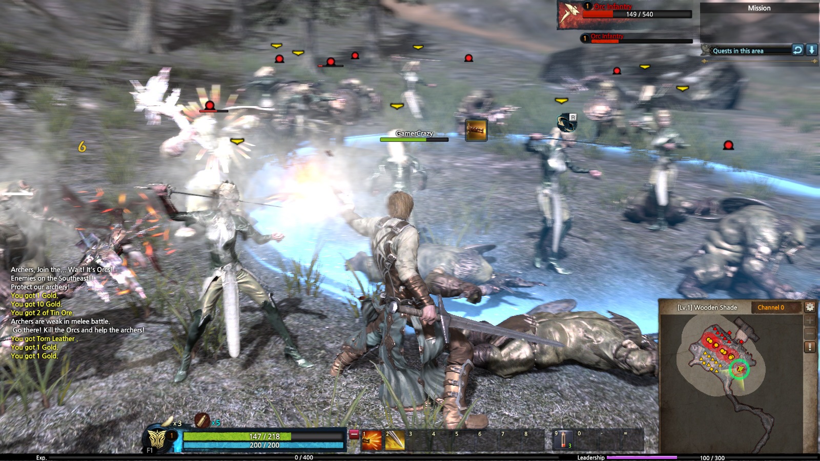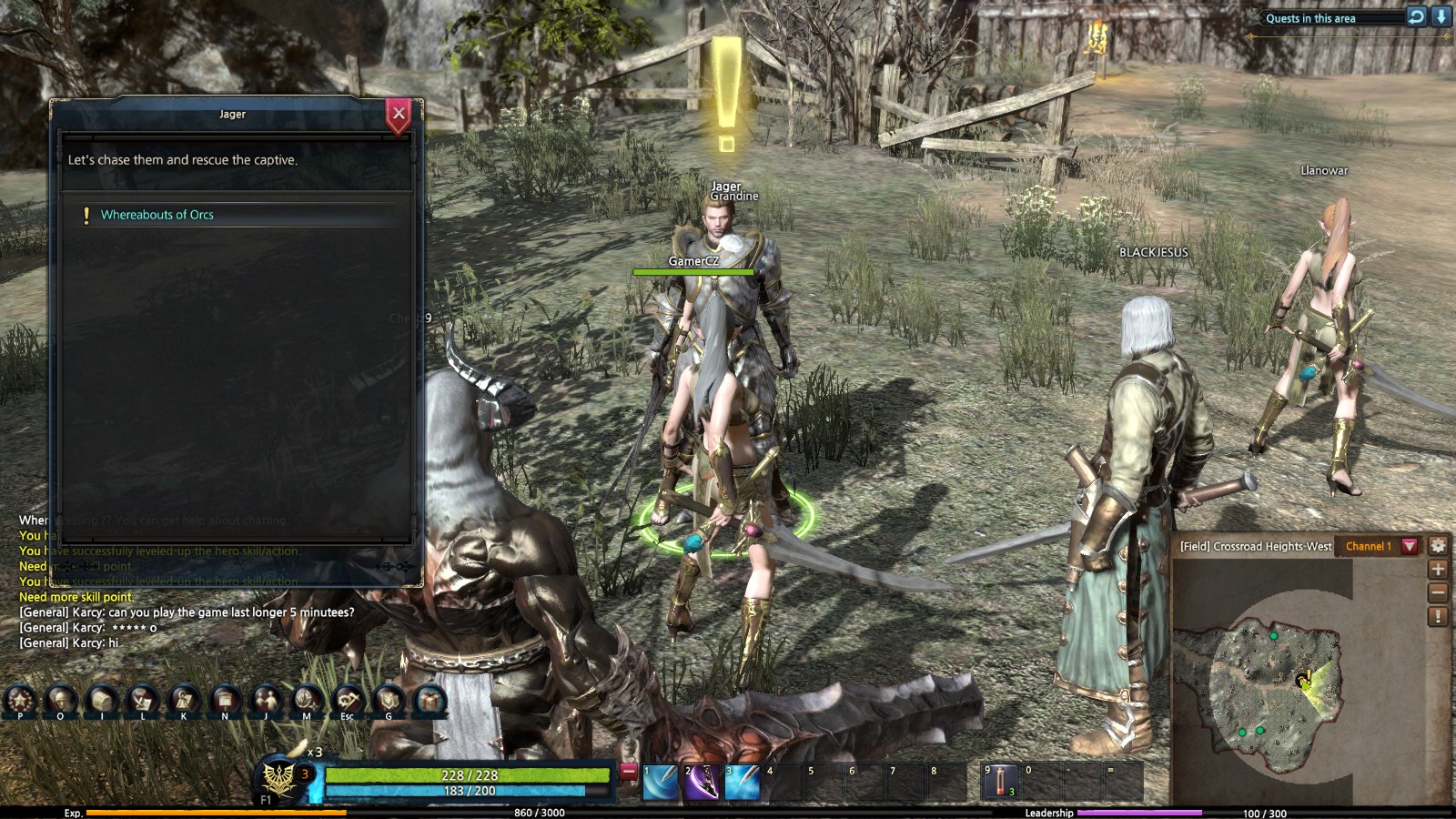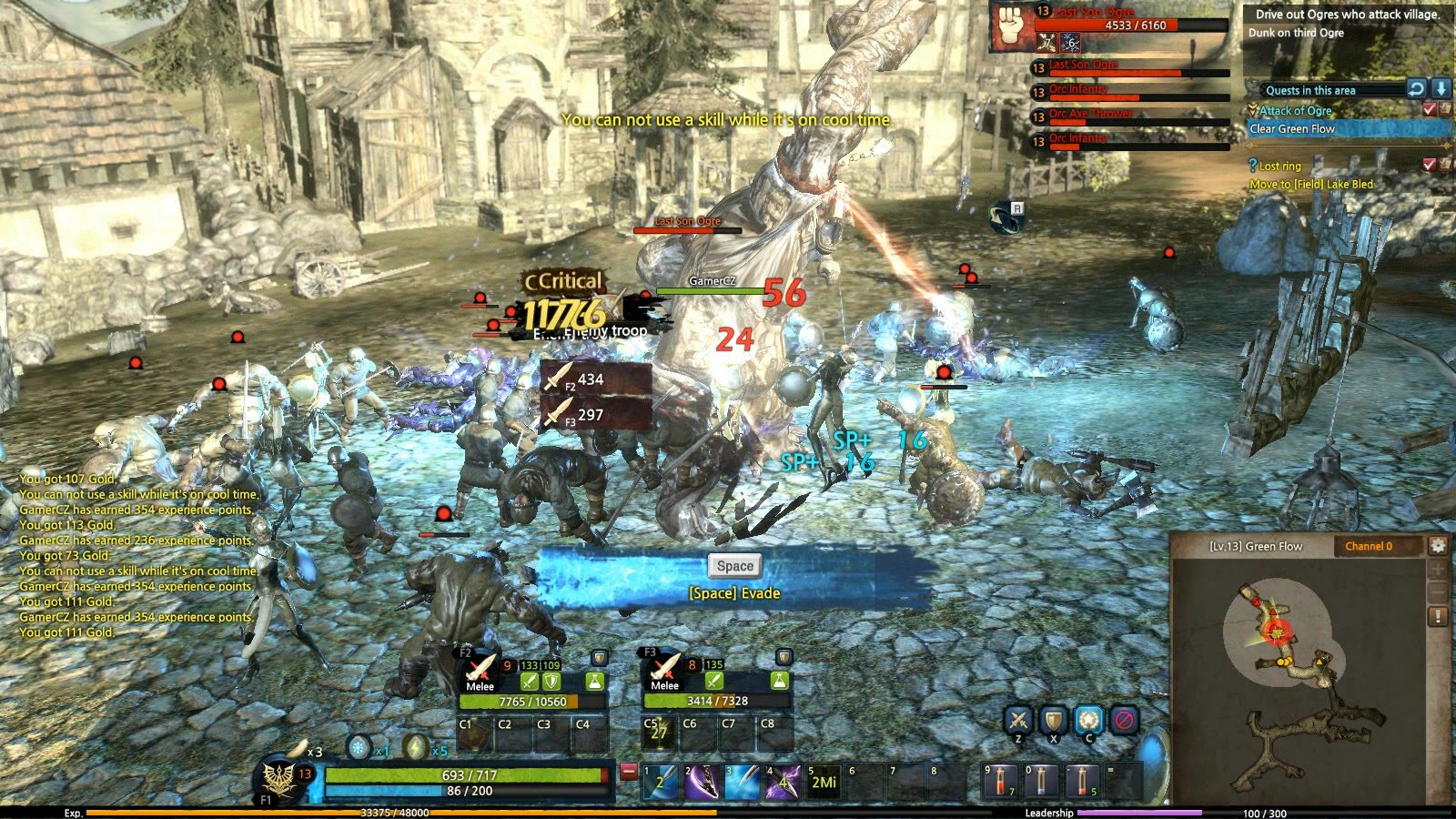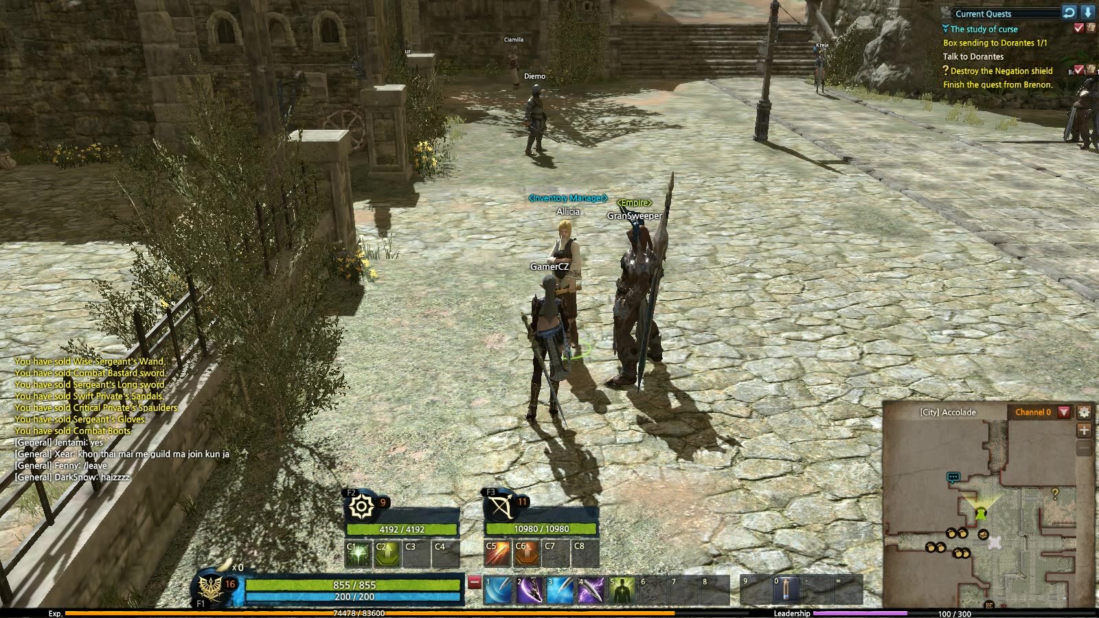 在城鎮和野外的時候,玩法就類似一般的線上角色扮演遊戲一樣,可以和 NPC 對話接取任務、買賣道具裝備、打怪解任務等等。在這邊是屬於公共的區域,會和其他玩家在這裡相遇。