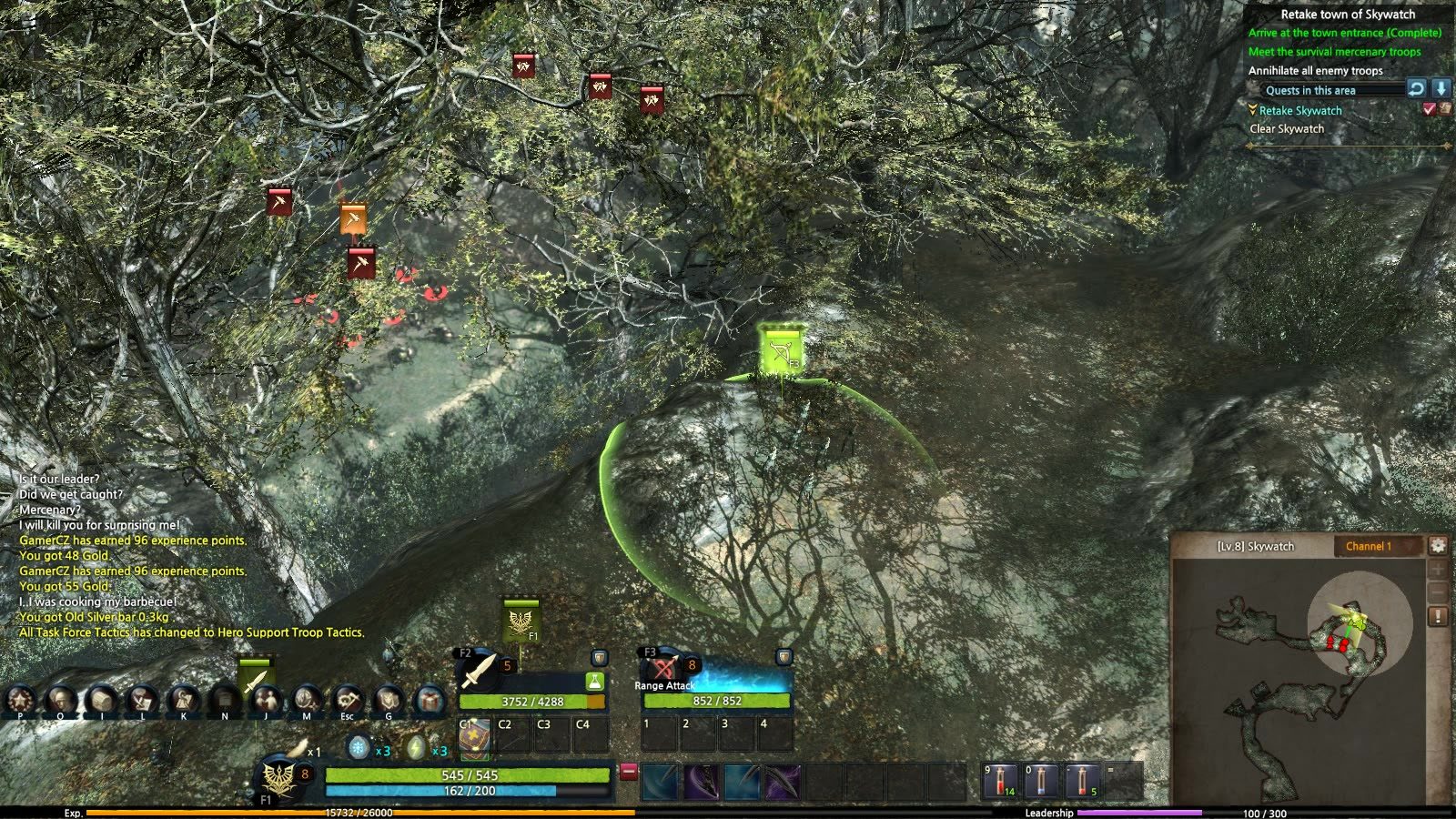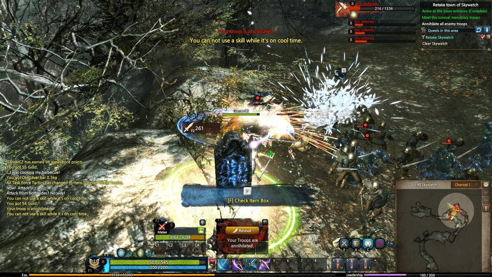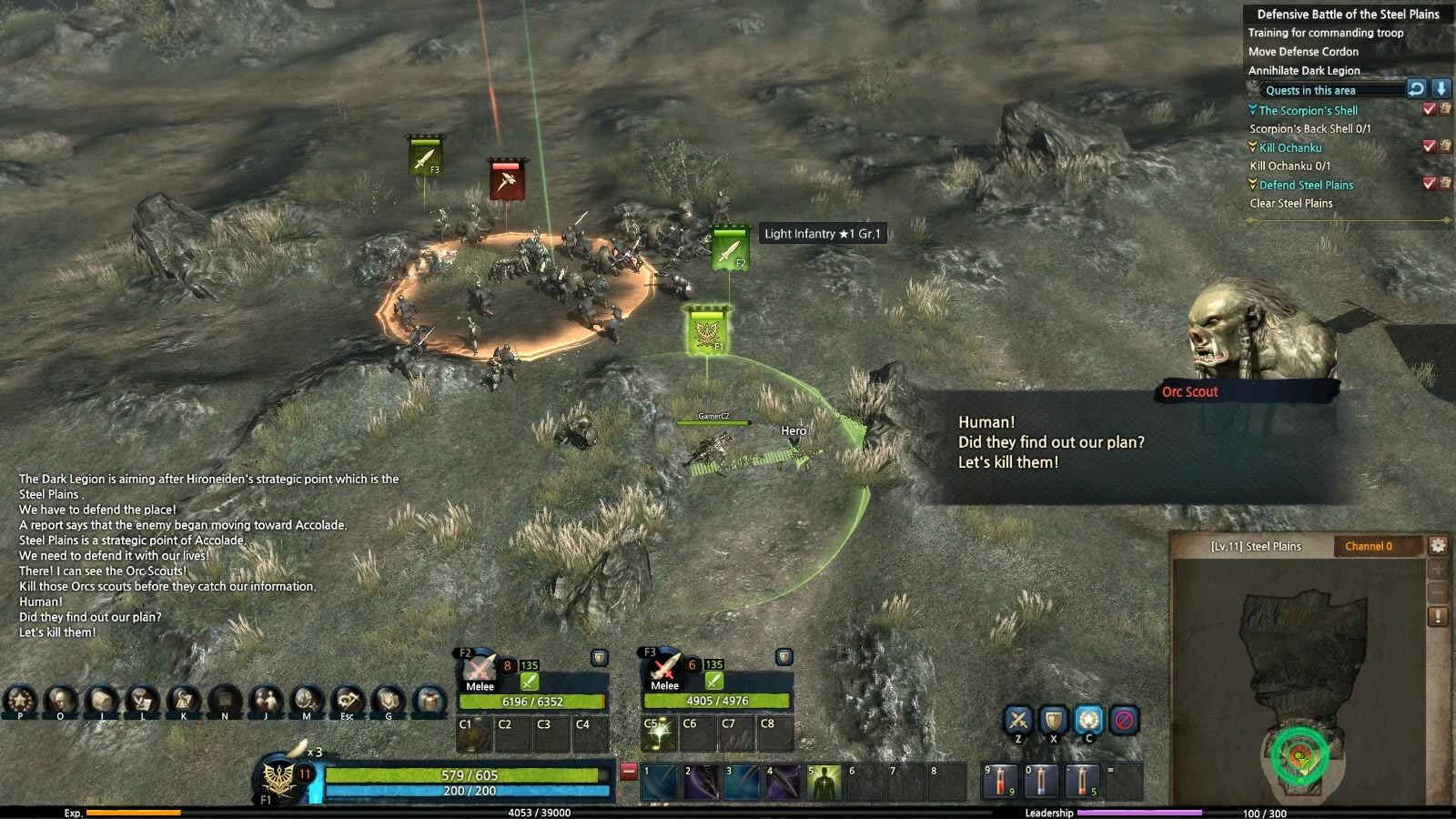 另外,指揮模式和英雄操作是即時無縫切換,前一秒還在調度軍隊,下一秒就可以切回來操作英雄進行戰鬥。不過當然要避免在和敵人近身肉搏的情況下做太久的軍隊操作,因為這時候敵人可是不會停下來讓你有喘息的機會,真的必要,也可以在指揮模式中命令英雄移動到安全的地點,避免在指揮的過程中遭到敵人的攻擊。