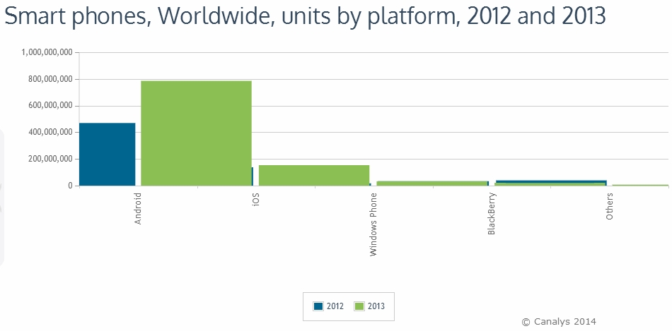 Android 裝置 2013 年出貨量達 7.85 億部,市佔率較去年成長 11%