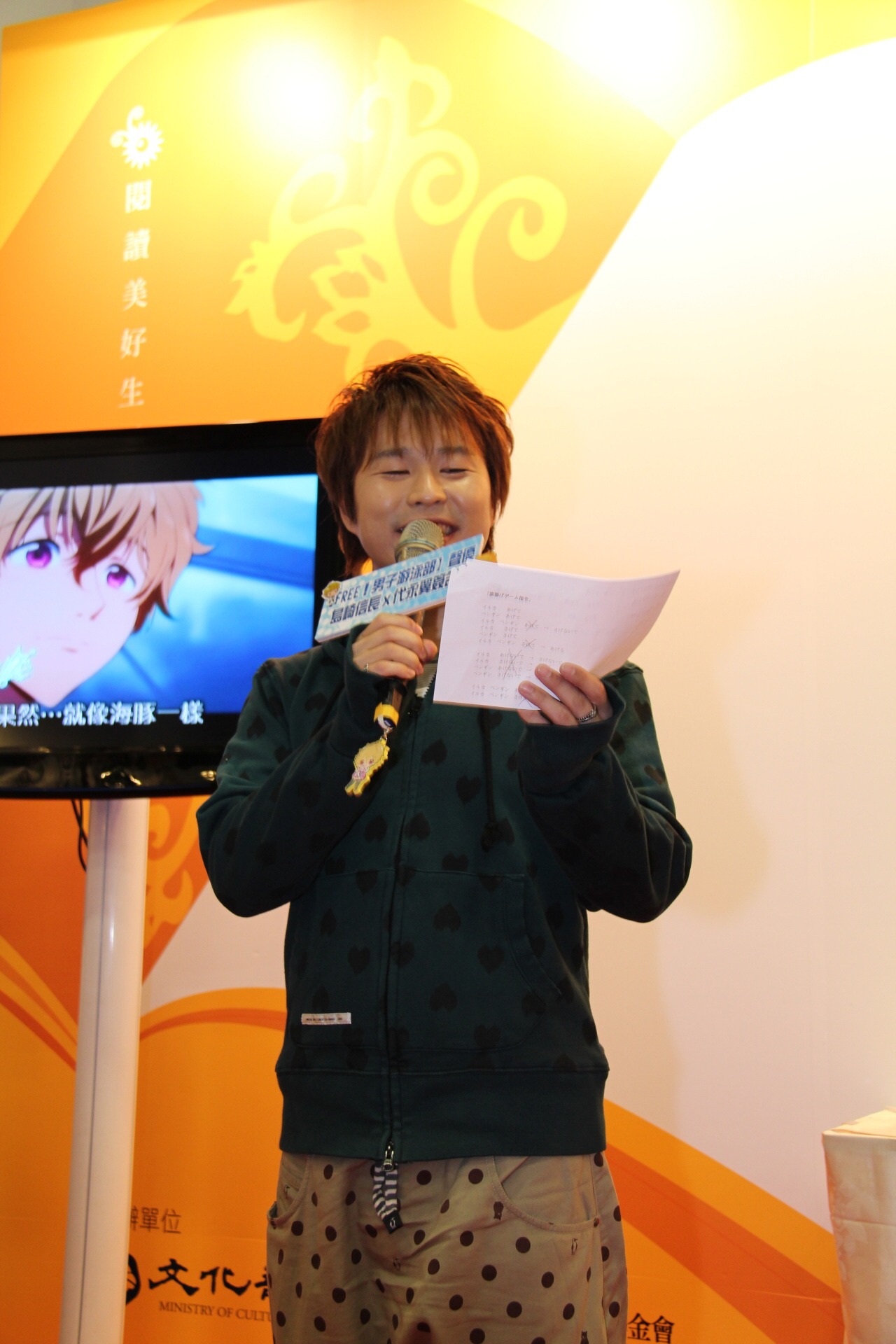 主辦單位在這次活動準備了一段動畫中片段請兩人現場配音,最後就在兩人相擁下結束舞台活動。