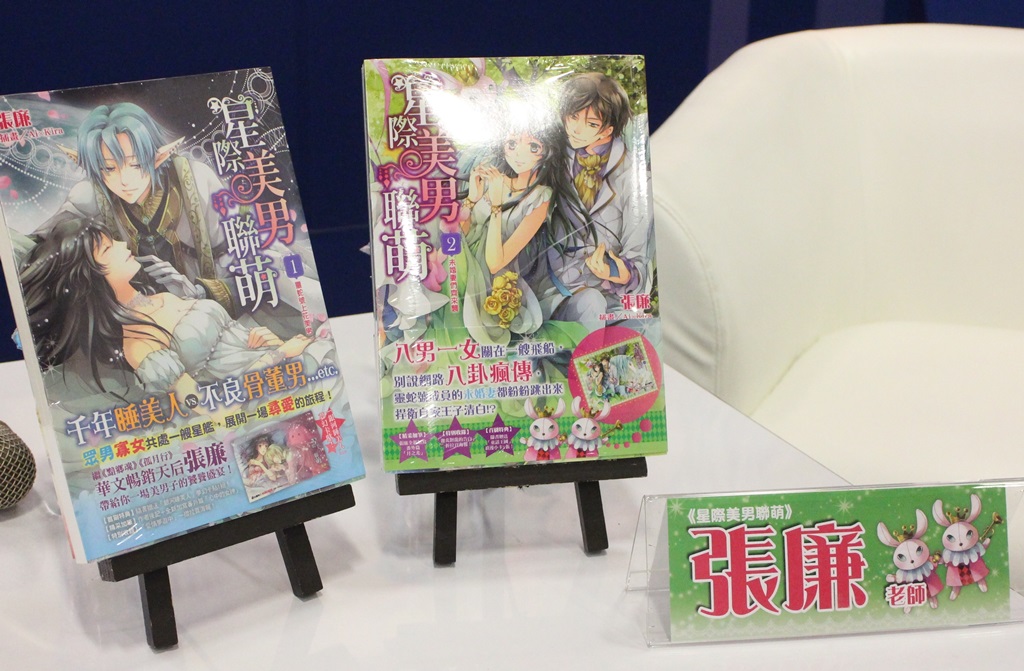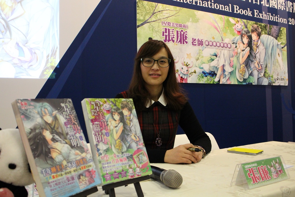 星際美男聯萌》故事內容描述個性堅強的少女蘇星雨,被醫生診斷罹患絕症後參加「冰凍計畫」,希望藉由計畫暫停生命到未來醫治,沒想到千年甦醒後的她,身體不但沒有病痛,反而被眾多外星人包圍被當成了活骨董……,於是蘇星雨被迫搭乘銀河中最強大的船艦「靈蛇號」,與艦上的各色美男展開銀河巡迴展覽。訪談過程中張廉老師說到自己創作這本書的心情就像是在跟美男們談戀愛,還偷偷提示了小說的後續發展,讓現場讀者驚呼連連!遠道而來的張廉老師特地準備了娃娃、書送給台灣的讀者們,其中最大的獎品是老師特別準備的黃冠造型項鍊,希望得到的讀者可以像「女王」一樣的充滿自信!