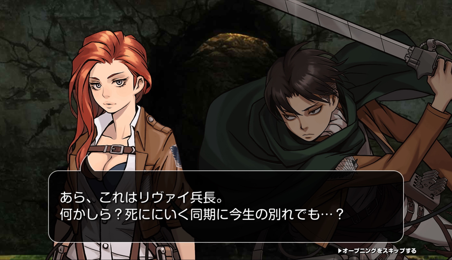 本作有獨創的故事劇情,玩家一進入遊戲就可看到「里維兵長」與原創角色「菲蕾塔」的對話,看來菲蕾塔是因為知道了重大秘密而被趕出牆外,知道這重大秘密的人被稱為「追放者」,