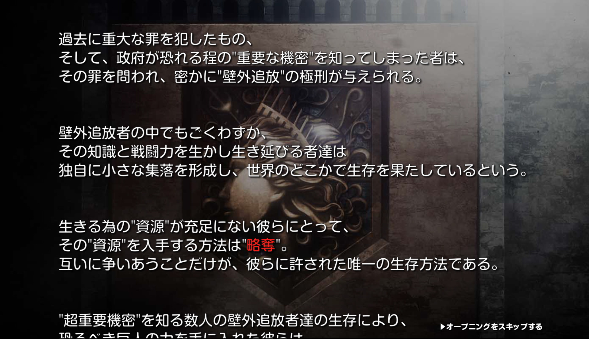 他們為了生存,掠奪,以及保護真相,開始追求著秘密,在菲蕾塔被趕出牆外兩年後,出現了新的追放者,也就是玩家要扮演的角色。