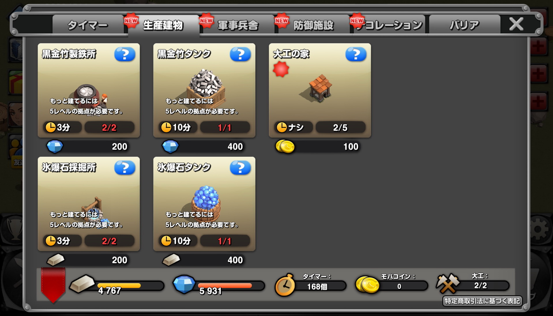 不過此設施需要 4萬黑金竹跟冰爆石,在初期可能得先花上一段時間,總之就盡量的先攻擊其他城鎮吧!