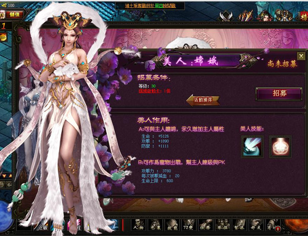 如此美人,招募其相伴在旁,不僅能時刻欣賞美人輕盈的體態,還能夠開啟美人的專屬技能,嫦娥仙子彙聚月光能量的仙術一經施展,發出獨具一格的2014標記技能,將會為聖王在戰鬥中增添無窮的助力。美人如斯,你心動了嗎?