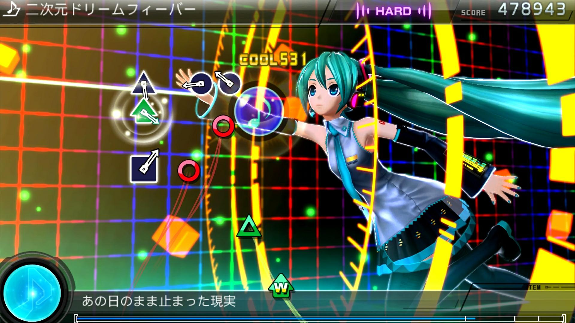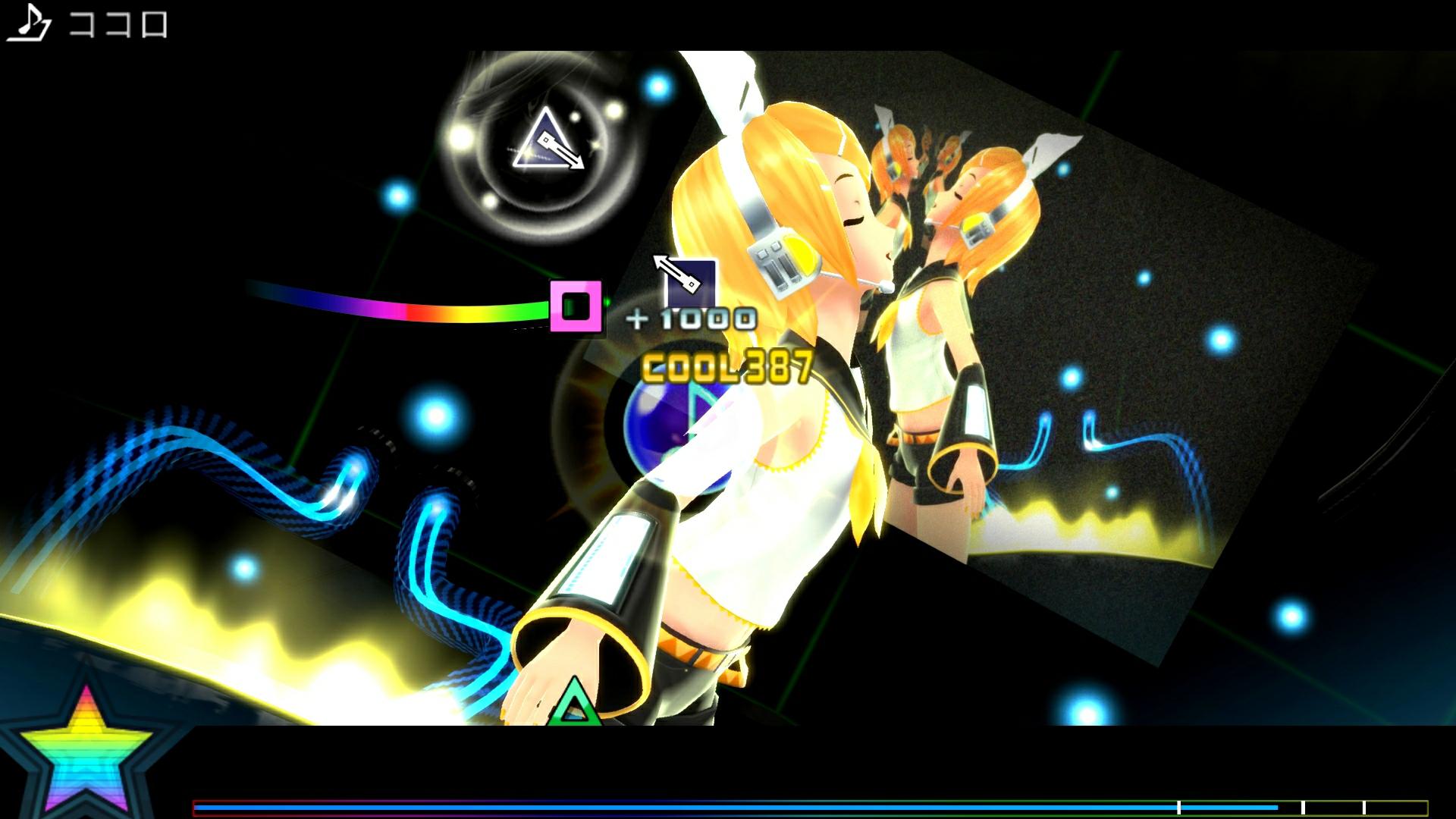 音ミク -Project DIVA- 2nd)》的樂曲,同樣在經過「F」系列作的高品質表現下重新製作。在 PV 中巡音流歌不再像原曲中那樣的旋轉,而是在副歌進行時奮力的跳舞。而值得注意的地方是目標音符採用了不停旋轉的配置。