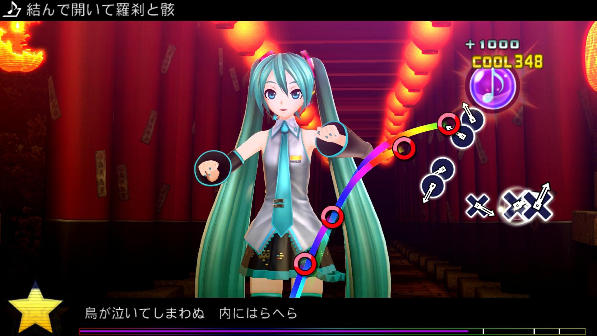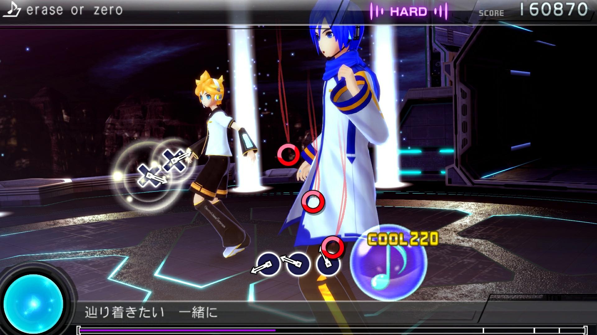 本次要介紹的收錄樂曲分別為新收錄的「二次元ドリームフィーバー」、「erase or zero」以及在「F」系列中廣受好評而重新製作的「結んで開いて羅刹と骸」、「ダブルラリアット」、「ココロ」共計 5 曲。而為了搭配樂曲的形象也設計了 4 套獨特的服裝模組,以下將公開大量的遊戲截圖,玩家可以慢慢觀賞。