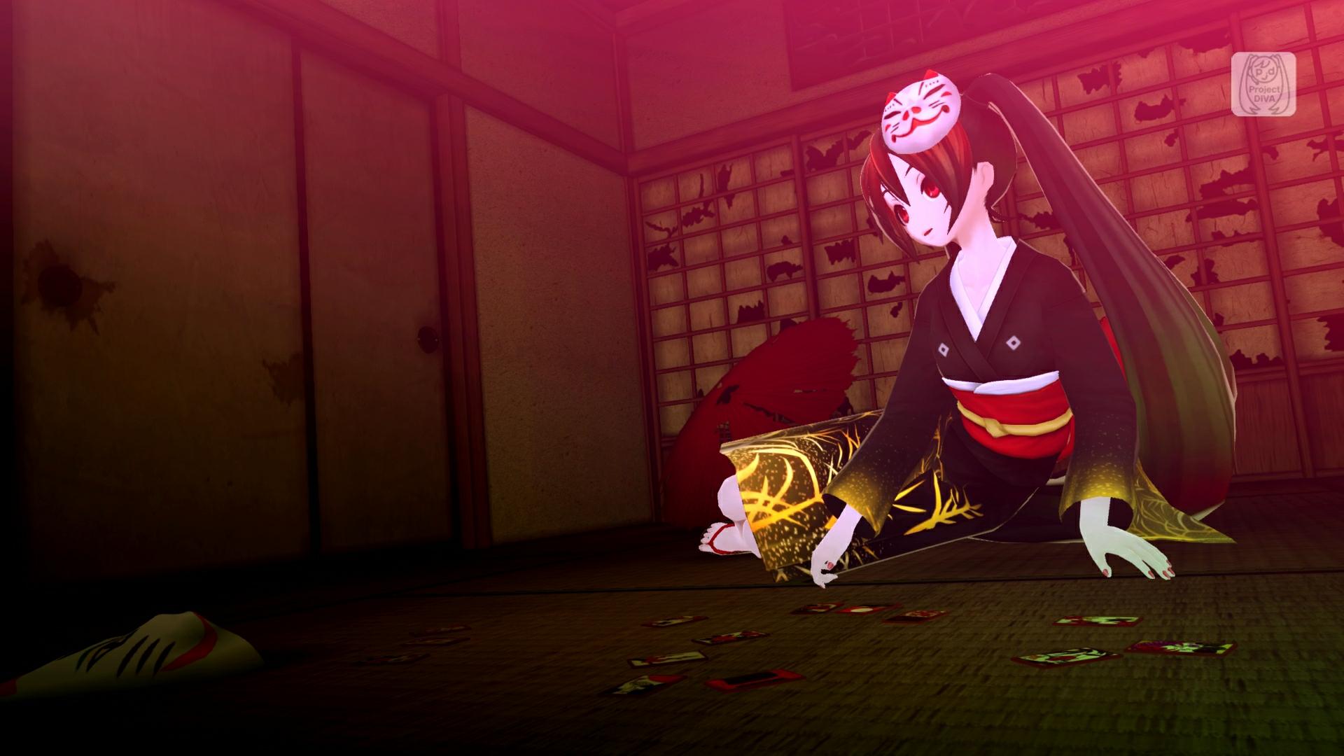 由ハチ設計,在「F」系列中再生的服裝。是人是妖、是羅剎還是骸骨?能夠看到真正姿態的也許是正在玩遊戲的你也說不定。該服裝曾收錄於《初音未來 -名伶計畫- 擴充版》