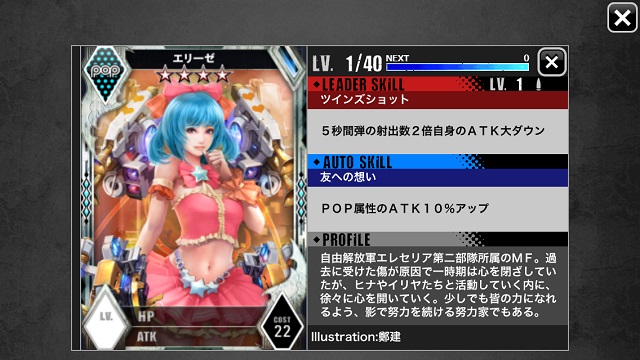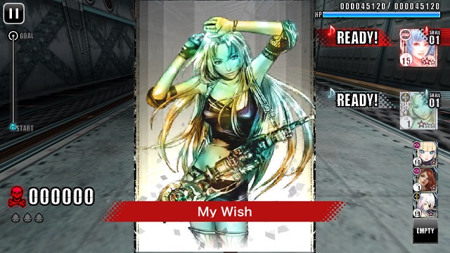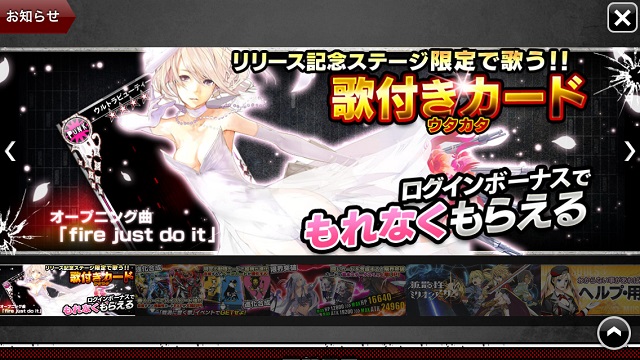 擁有歌唱(ウタカタ)特效的五星卡「ティア」會在進入戰鬥後演唱一首「My Wish」並提升HP與攻擊力