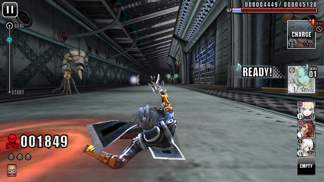 Temple Run 》的模式,但並非像過街老鼠般地逃亡任人宰割,反倒是向前衝鋒利用銃魂的射擊與揮斬打倒路線上的所有「機獸」,玩家可以運用左右滑動變更路徑,同時也能上下滑動控制跳躍與滑行以閃避障礙物,此外,部份關卡也有攻勢凌厲的 BOSS 級機獸等待玩家征服。