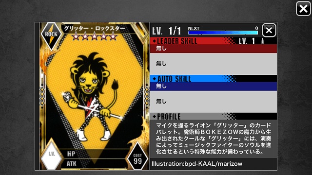 卡牌依星星數區別稀有度,通常三顆星以上的卡牌才附有隊長技(LEADER SKILL)與自動技(AUTO SKILL),其中隊長技必須是牌組裡設定為隊長的卡牌或其他玩家的支援卡才會發動。此外本作的卡牌依風格分為「POP(流行樂)」、「ROCK(搖滾樂)」、「PUNK(龐克樂)」三種,每種風格對技能與關卡加成有直接的影響。