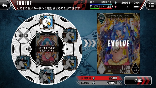 進化合成的方式採指定進化合成卡,與時下流行的《神魔之塔》有點類似