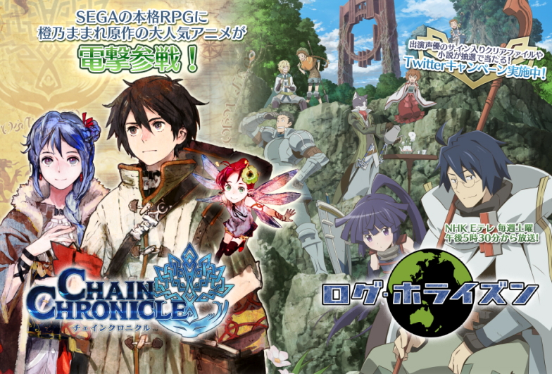 CHAIN CHRONICLE》繼去年與橙乃真希(橙乃ままれ)原作的《魔王勇者》合作之後,又將推出和以 MMORPG 世界為舞台之奇幻作品《記錄的地平線》合作的期間限定活動。
