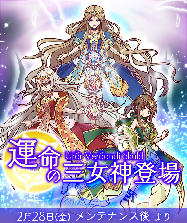 此外,在 2 月 28 日的定期維護過後,官方也於稀有轉蛋陣容中新增了「命運三女神」以及火、水、木、光、暗五種屬性的女性角色。