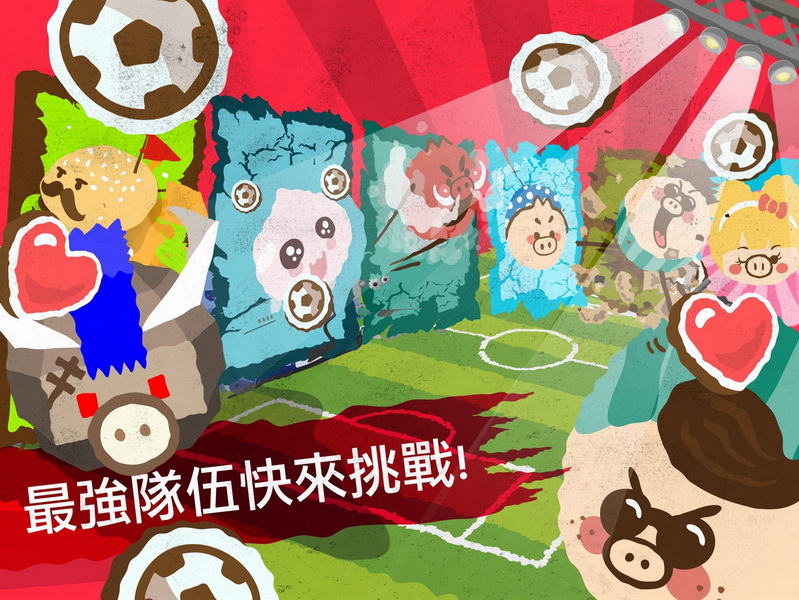 為了強化不同玩家在場上的鑑別度,遊戲還內建了各種不同造型的小豬供玩家選擇。至於遊戲的最終目的,當然就是克服遊戲中其他小豬以及身旁朋友的阻干擾,盡可能地攻破敵方的球門即可獲得勝利。