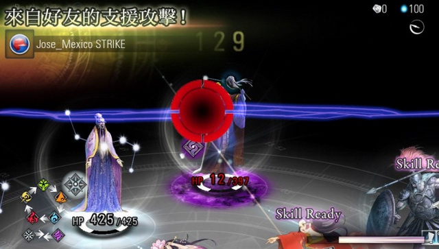 戰鬥中的技巧點數,將會依照時間經過從 0 至 100 逐漸